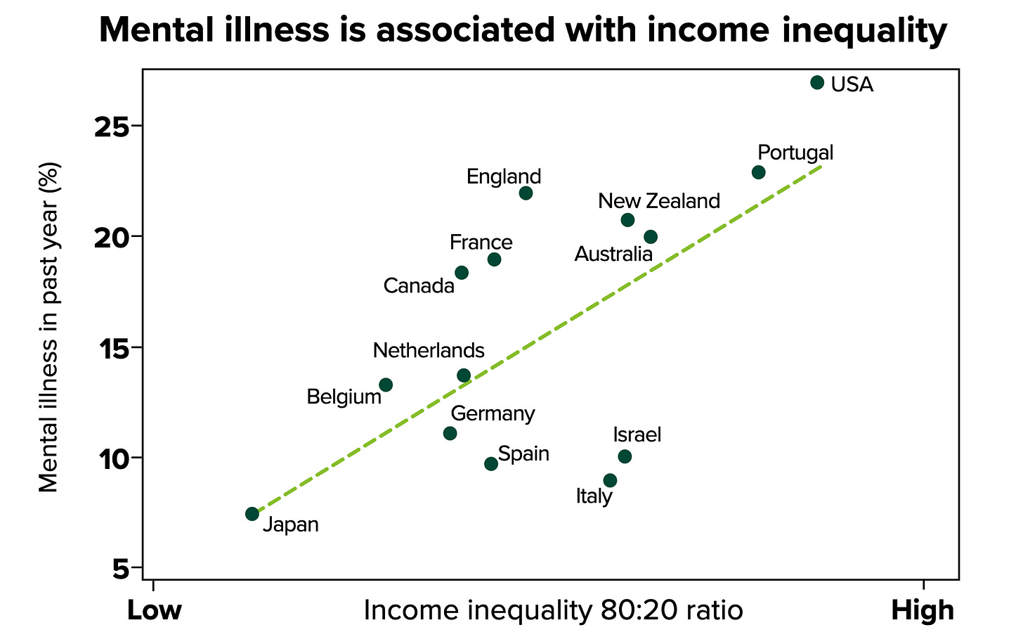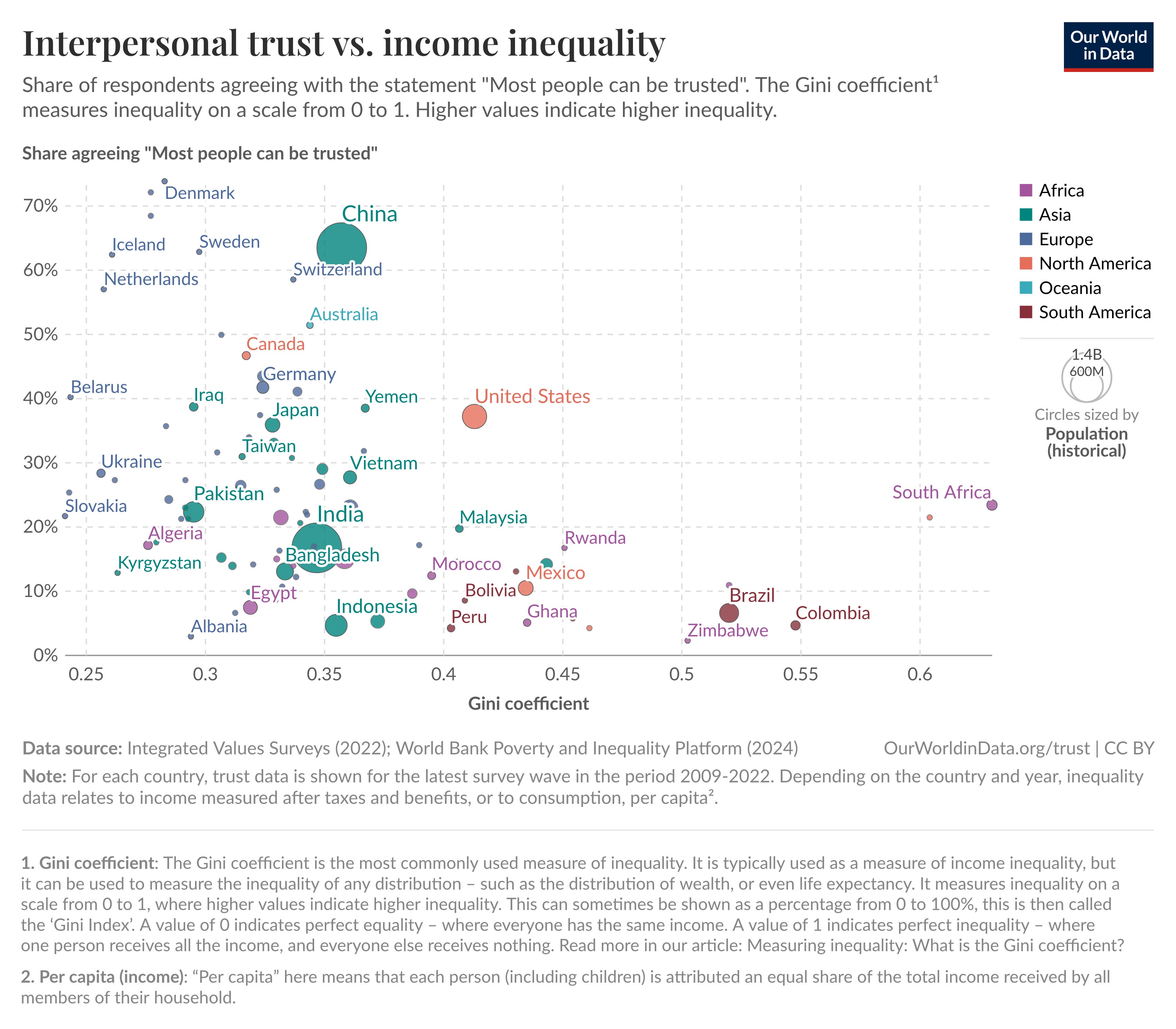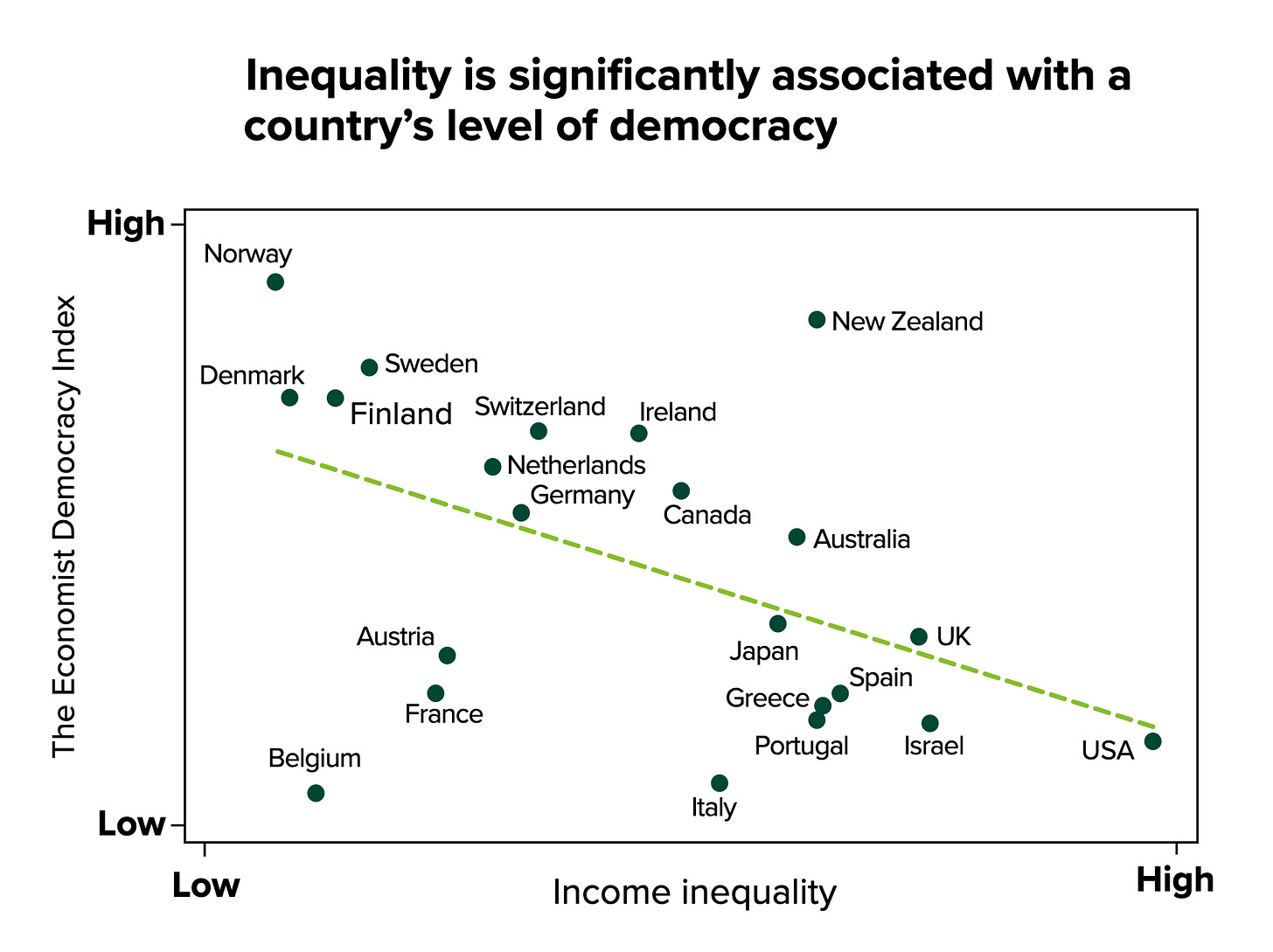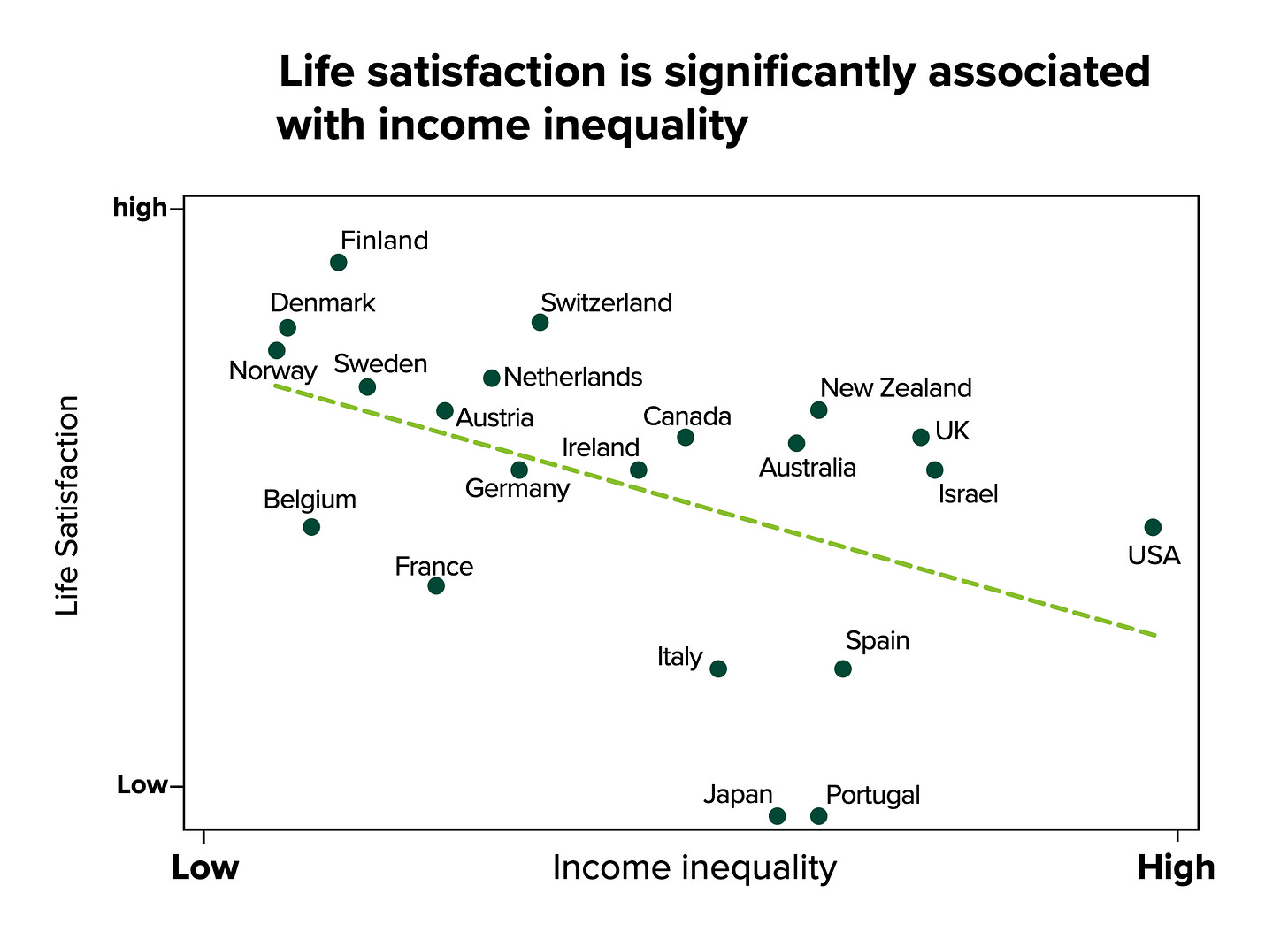 One of the biggest predictors for lack of trust is economic inequality.5 This isn’t just ideological: it’s backed by data. Across countries, higher levels of inequality consistently go hand-in-hand with lower levels of trust.